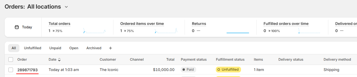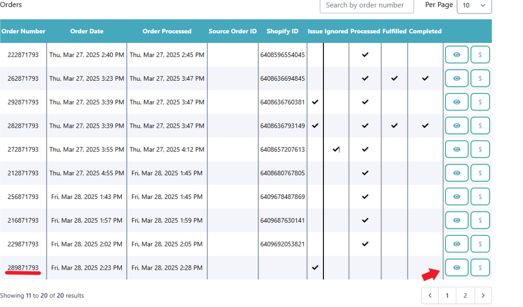 Order List Page Inspect the line item SKUs included in the order in IDAConnect and verify their stock levels in Shopify.