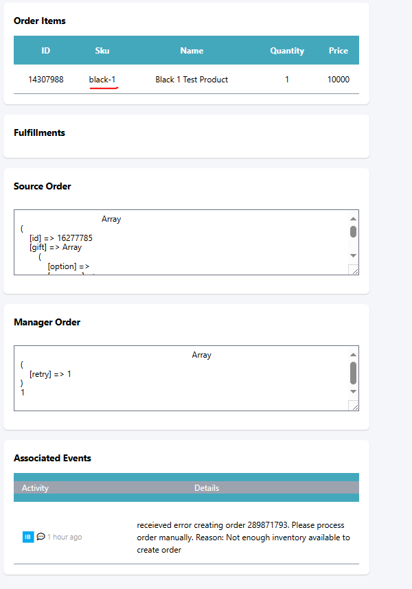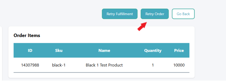 - After adjust the inventory of the SKU we can now retry the Order with issue